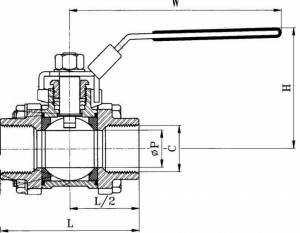 3-teiliger Edelstahlkugelhahn mit Anschweißenden oder IG/IG, voller Durchgang, PN63, M3 Baulänge/S13 Baulänge