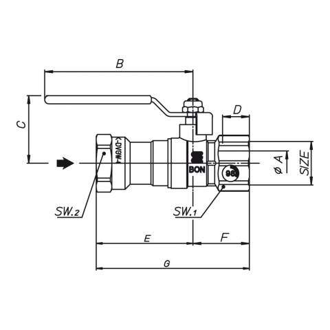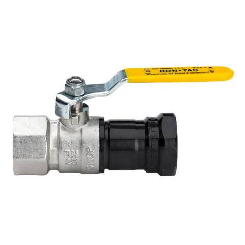 | G0261N38 | Gas-Kugelhahn (Messing vernickelt) mit integrierter Thermischer Armaturen- Sicherung, IG/IG, mit Stahl-Hebelgriff (Vinyl isoliert). - 1"1/2 - ISO |