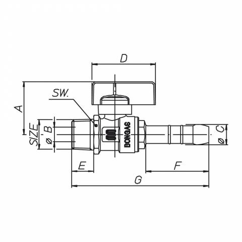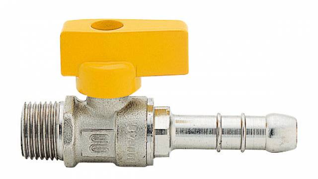 | G0302N03 | Gas-Kugelhahn, AG/Schlauchtülle D 14 mm, Plastik-Drehgriff, Messing vernickelt. - 3/8" - ISO |