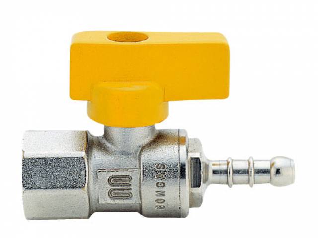 G0308N33Gas-Kugelhahn, IG/Schlauchtülle D 10 mm, Plastik-Drehgriff, Messing vernickelt. - 3/8" - ISO