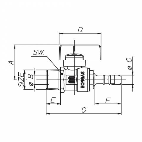 | G0310N02 | Gas-Kugelhahn, AG/Schlauchtülle D 10 mm, Plastik-Drehgriff, Messing vernickelt. - 1/4" - ISO |