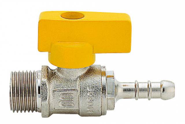 | G0310N03 | Gas-Kugelhahn, AG/Schlauchtülle D 10 mm, Plastik-Drehgriff, Messing vernickelt. - 3/8" - ISO |