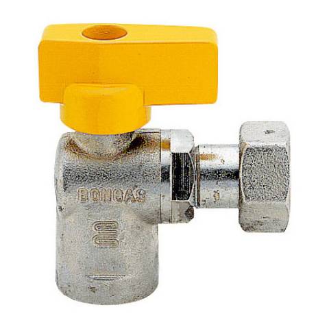 | G0324N36 | Gas-Kugelhahn, Eckausführung, red. Durchgang, IG/IG, Übw-Mutter, PlastikDrehgriff, Messing vernickelt. - 1/2" X 3/4" - ISO |