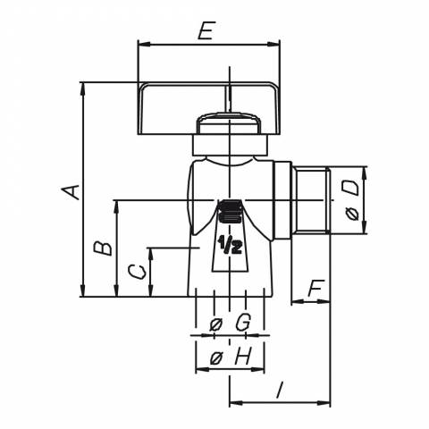 G0356N04Gas -Kugelhahn, Eckaus führung, red. Durchgang, IG/AG, Plastik- Drehgriff, Messing vernickelt. - 1/2" X 1/2" - ISO