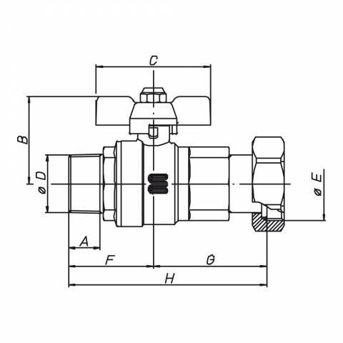 | S0285N39 | Gas-Kugelhahn, schwere Ausführung, voller Durchgang, AG/IG, Übw-Mutter, Alu- Flügelgriff, Messing vernickelt. - 3/4" X 1"1/4 - ISO |