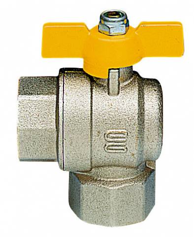 | S0286N34 | Gas-Kugelhahn, Eckausführung, IG/IG, Alu-Flügelgriff, Messing vernickelt. - 1/2" X 1/2" - ISO |