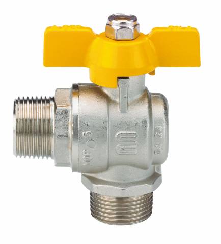 | S0289N34 | Gas-Kugelhahn, Eckausführung, AG/AG, Alu-Flügelgriff, Messing vernickelt. - 1/2" X 1/2" - ISO |