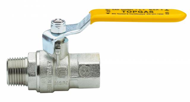 | S1222N37 | Gas-Kugelhahn, mittelschwere Ausführung, voller Durchgang, AG/IG, StahlHebelgriff (Vinyl isoliert), Messing vernickelt. - 1"1/4 - ISO |