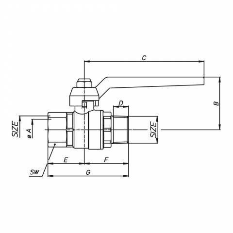 | S1225N39 | Gas-Kugelhahn, mittelschwere Ausführung, voller Durchgang, AG/IG, AluHebelgriff, Messing vernickelt. - 2" - ISO |