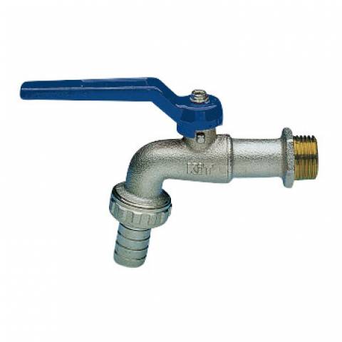 | S0059N05 | Kugelauslaufhahn kompakt, AG Schlauchverschraubung, Alu-Hebelgriff blau, Messing vernickelt. - 3/4" |