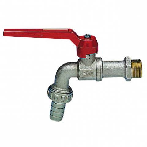 | S0061N04 | Kugelauslaufhahn PN16 mit Schlauchanschluß mit Alu-Hebelgriff (rot), Messing vernickelt. - 1/2" - ISO |