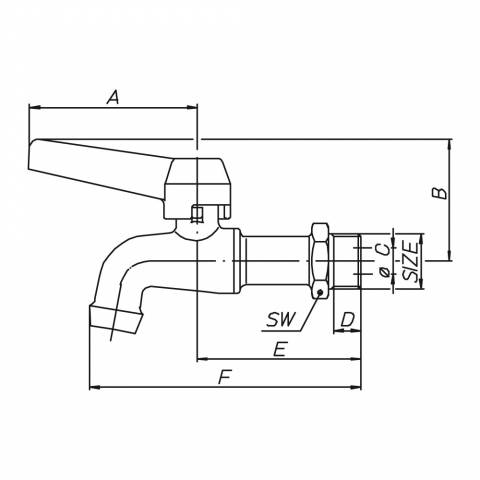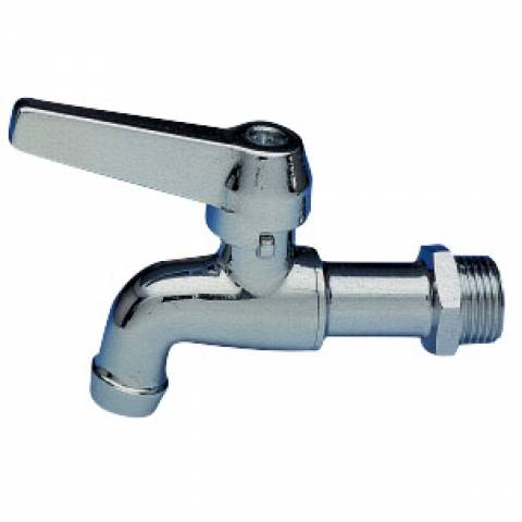 | S0100C04 | Kugelauslaufhahn PN 16, Auslauf mit Perlator, Alu-Hebelgriff (verchromt), Messing vernickelt. - 1/2" - ISO |