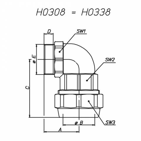 C0308S84Winkel-Verbindungsstück, AG/Klemmringanschluß, Messing blank. - 2" x 63 - TUBO POLIETILENE