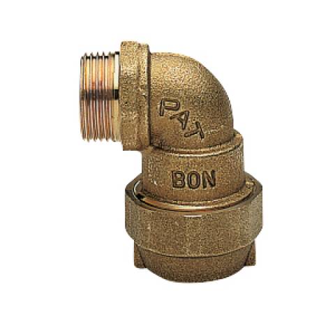 C0308S81Winkel-Verbindungsstück, AG/Klemmringanschluß, Messing blank. - 1" 1/2 x 50 - TUBO POLIETILENE