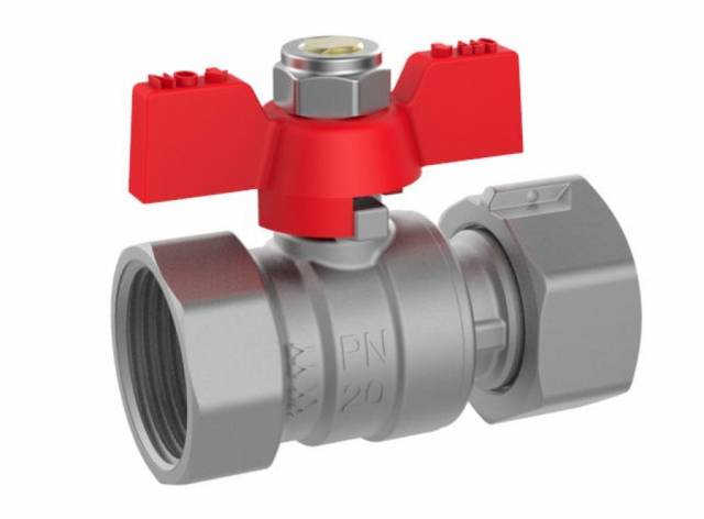 BON-Kugelhahn IG/ÜM, mit lösbarer Überwurfmutter, Alu-Flügelgriff rot lackiert