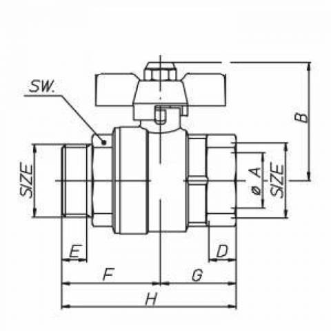 Kugelhahn, voller Durchgang, IG/AG, Alu-Flügelgriff, Messing vernickelt.