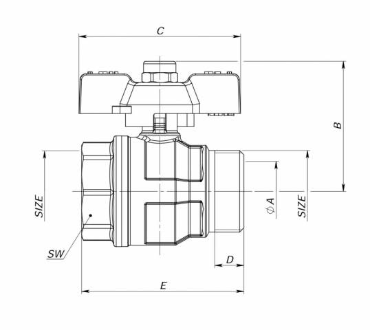 | S0238K35 | Kugelhahn, Standardausführung, voller Durchgang, IG/AG, Alu-Flügelgriff , Messing vernickelt. - 3/4" |