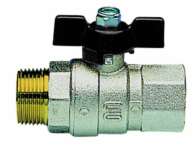 Kugelhahn, Standardausführung, voller Durchgang, IG/AG, Alu-Flügelgriff , Messing vernickelt.