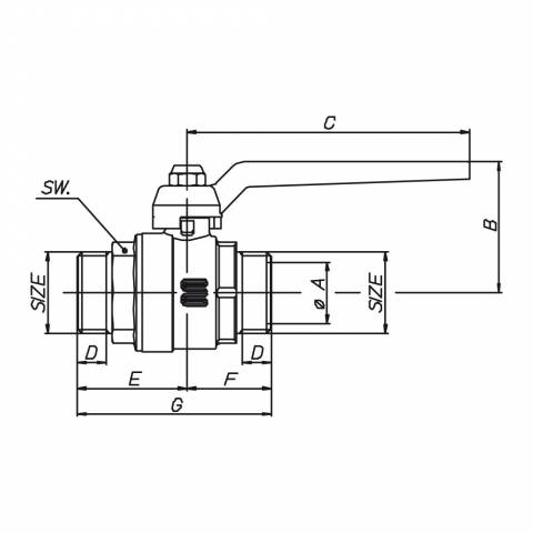| S0216N09 | Kugelhahn, voller Durchgang, AG/AG, Alu-Hebelgriff, Messing vernickelt. - 2" - ISO |