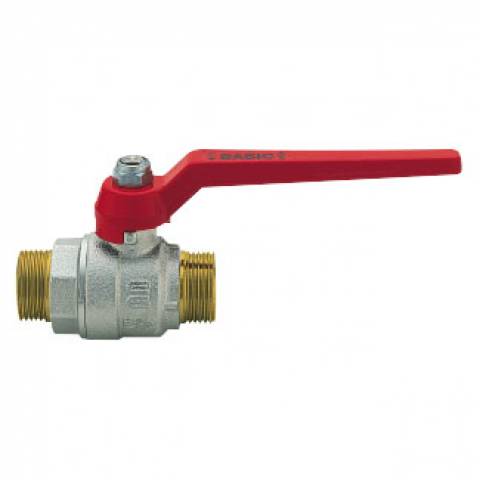 Kugelhahn, voller Durchgang, AG/AG, Alu-Hebelgriff, Messing vernickelt.