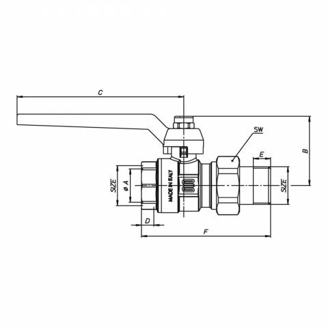 | S3226N05 | Kugelhahn, voller Durchgang, AG/Übw-Mutter/IG, Alu-Hebelgriff, Messing vernickelt, kompakte Baulänge. - 3/4" - ISO |