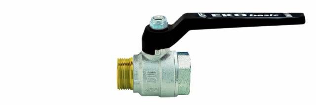 Kugelhahn PN30, voller Durchgang, AG/IG, Alu-Hebelgriff schwarz, Messing vernickelt.