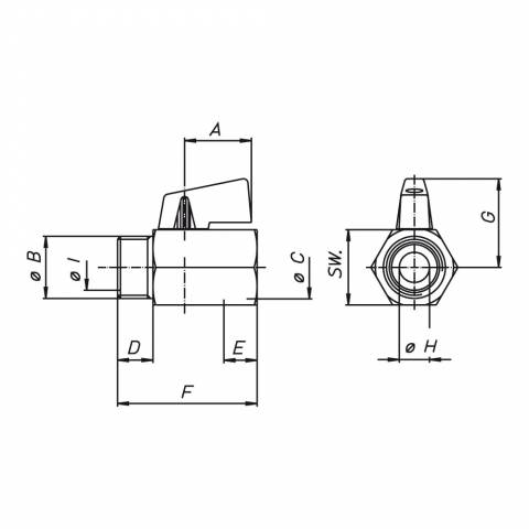 | S1318C04 | Kugelhahn, AG/IG, einteiliges 6-Kant-Gehäuse aus Messing verchromt, Hebelgriff verchromt. - 1/2" x 15 - ISO |