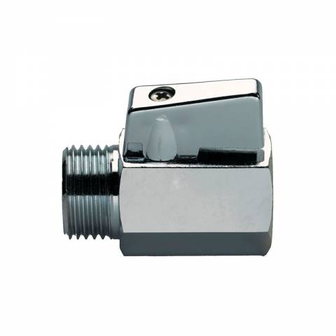 | S1318C03 | Kugelhahn, AG/IG, einteiliges 6-Kant-Gehäuse aus Messing verchromt, Hebelgriff verchromt. - 3/8" x 12 - ISO |