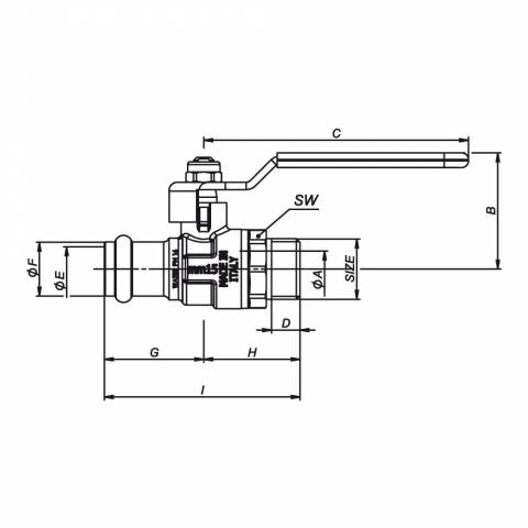 | S1122N14 | Kugelhahn, mittelschwere Ausführung, voller Durchgang, AG/Pressverbinder, Stahl-Hebelgriff (Vinyl isoliert), Messing vernickelt. - 28 - PRESSARE |