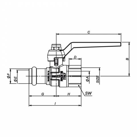 | S1124N07 | Kugelhahn, mittelschwere Ausführung, voller Durchgang, IG/Pressverbinder, Alu- Hebelgriff , Messing vernickelt. - 15 - PRESSARE |