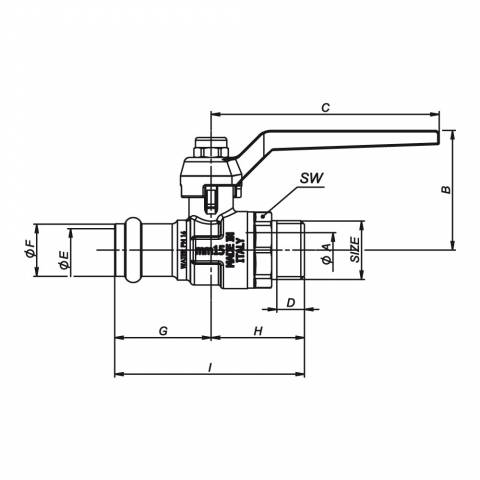 | S1125N09 | Kugelhahn, mittelschwere Ausführung, voller Durchgang, AG/Pressverbinder, Alu- Hebelgriff, Messing vernickelt. - 18 - PRESSARE |