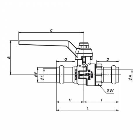 | S1126N07 | Kugelhahn, mittelschwere Ausführung, voller Durchgang, Pressverbinder /Pressverbinder, Alu -Hebelgriff, Messing vernickelt. - 15 - PRESSARE |