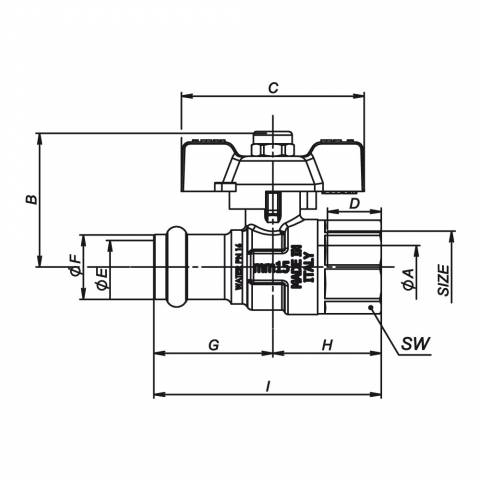 | S1127N07 | Kugelhahn, mittelschwere Ausführung, voller Durchgang, IG/Pressverbinder, Flügelgriff , Messing vernickelt. - 15 - PRESSARE |