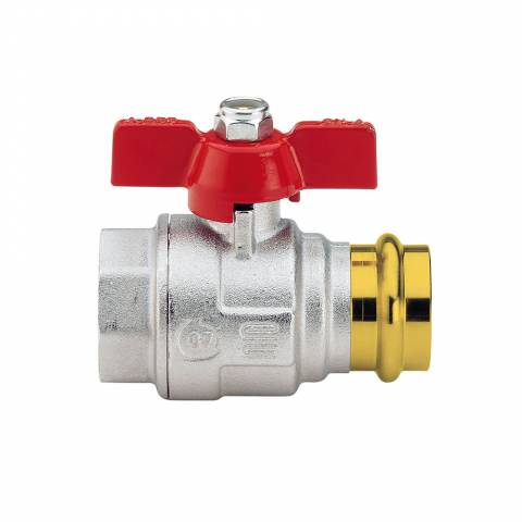 Kugelhahn, mittelschwere Ausführung, voller Durchgang, IG/Pressverbinder, Flügelgriff , Messing vernickelt.