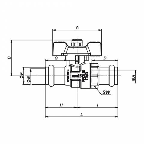 | S1129N09 | Kugelhahn, mittelschwere Ausführung, voller Durchgang, Pressverbinder /Pressverbinder, Flügelgriff, Messing vernickelt. - 18 - PRESSARE |