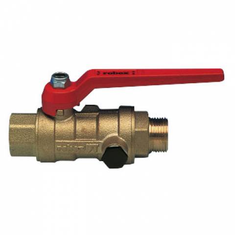 Das ROBEX-VT-Dreifachventil ist eine Kombination aus dem Kugelhahn OMEGA, schwere Serie mit vollem Durchgang, dem Rückschlagventil VALSTOP, schwere Serie mit vollem Durchgang mit minimalem Druckverlust, und zwei seitlichen Wasserfassungen, eine oberhalb und eine unterhalb des Rückschlags.